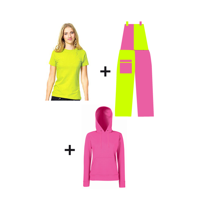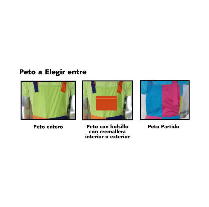 Camiseta basica manga corta (modelo unisex, niño y entallada de mujer) + sudadera capucha (modelo unisex, niño y entallada de mujer), mas peto bicolor.