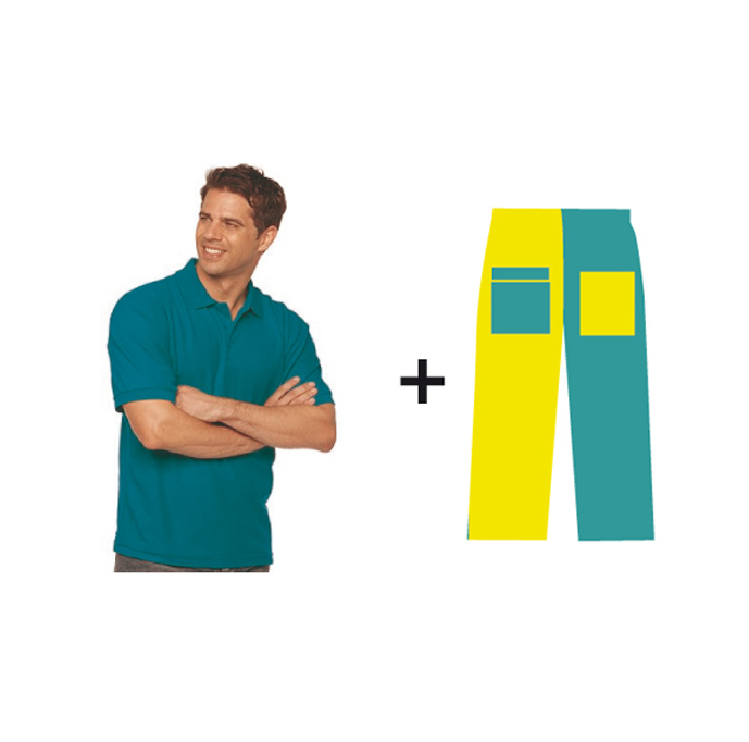 Polo modelo hombre y entallado de mujer + Pantalon bicolor.